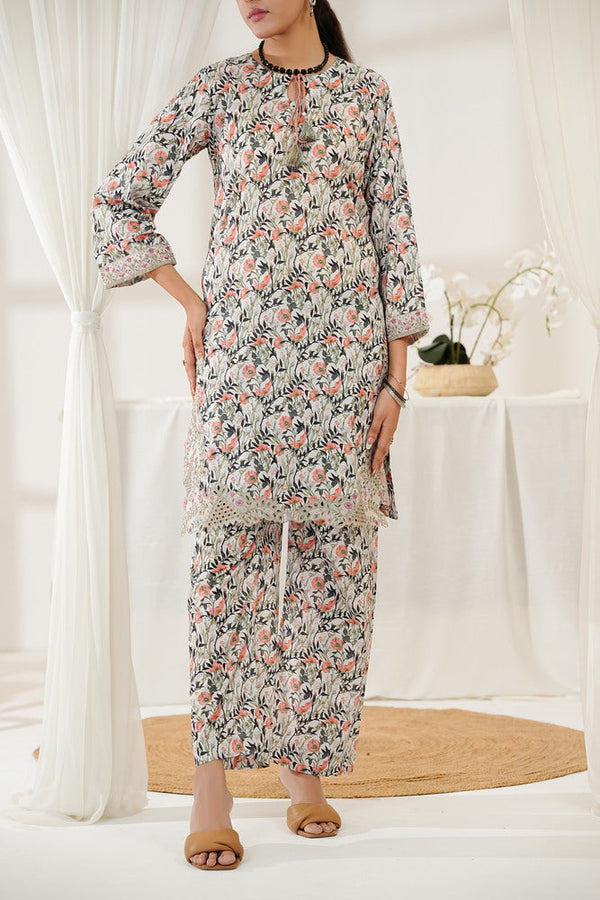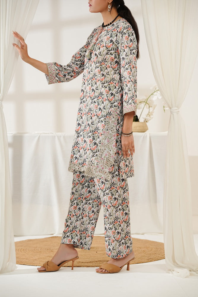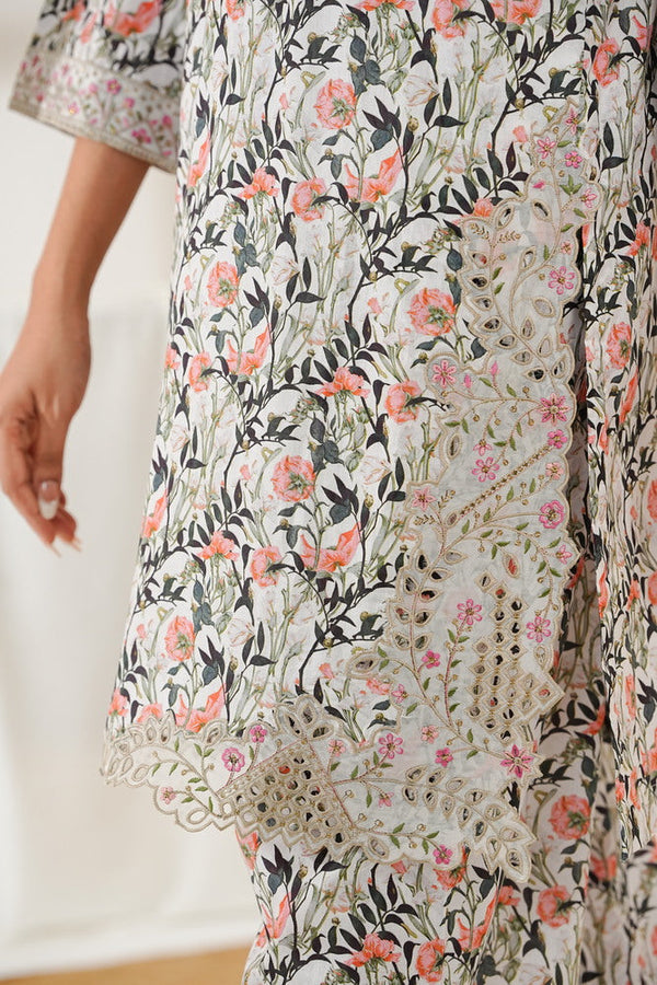- Shirt : Printed Shirt With Embroidered Sleeve and Chaak Daman