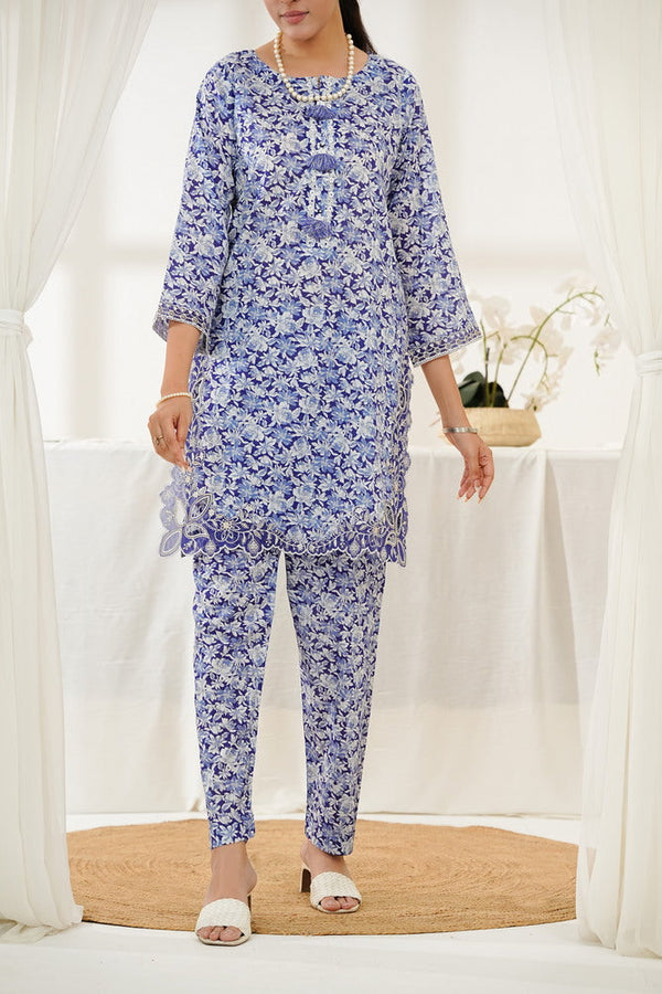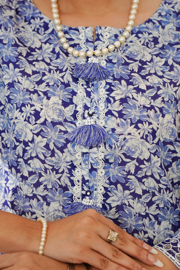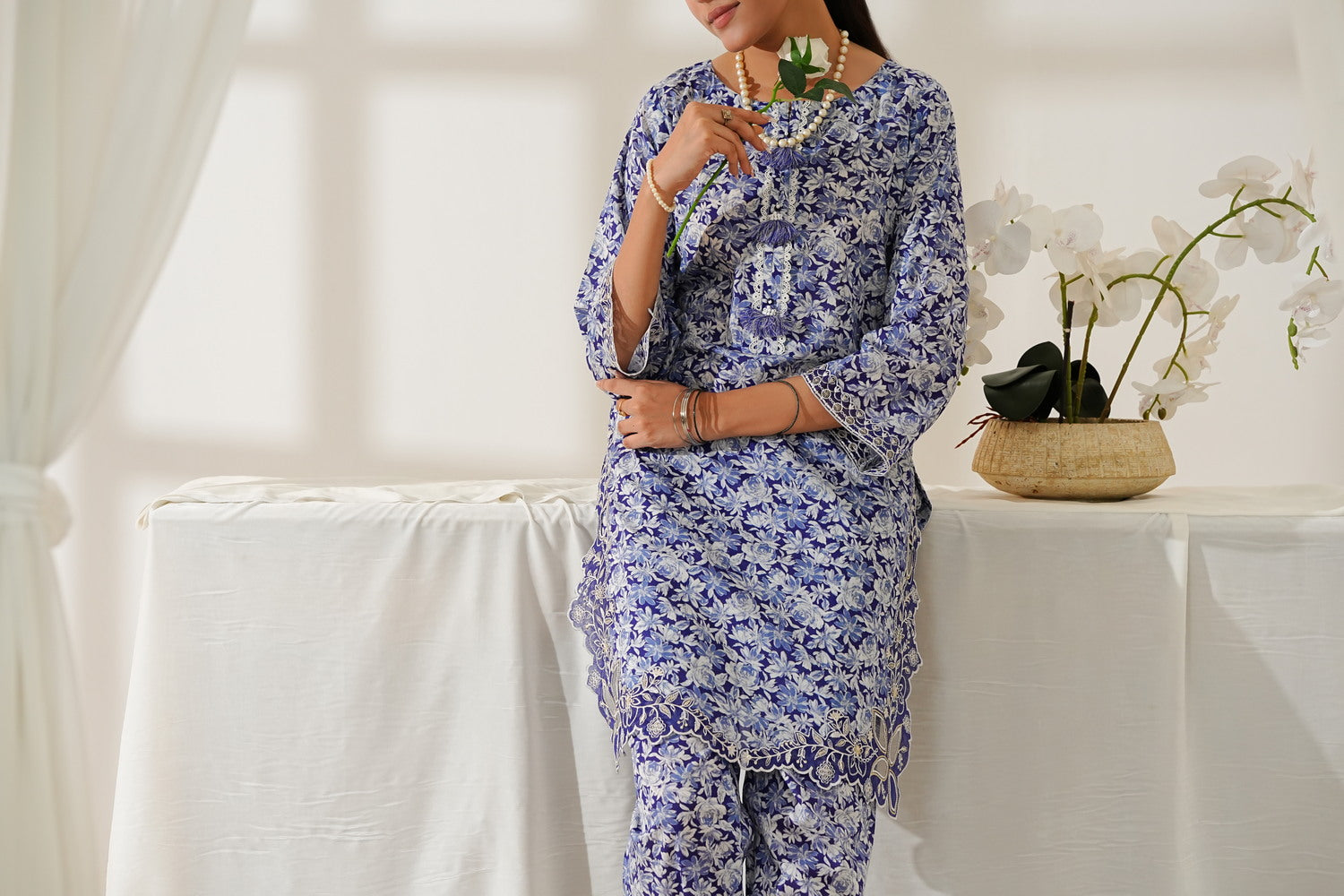 - Shirt : Printed Shirt With Embroidered Sleeve and Chaak Daman