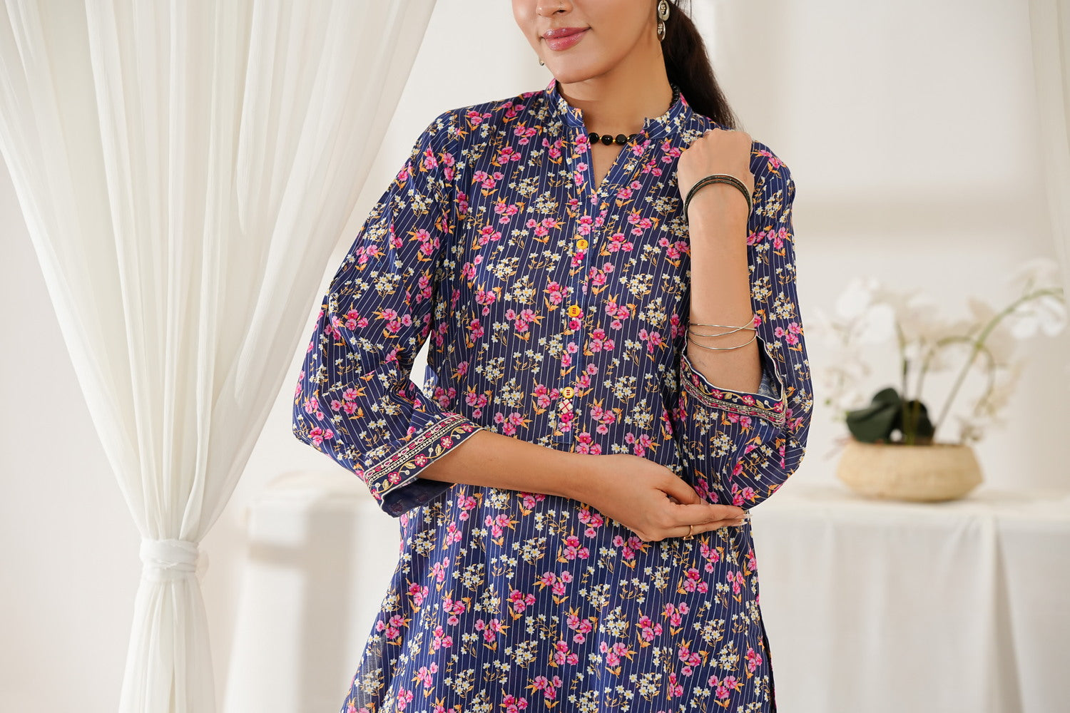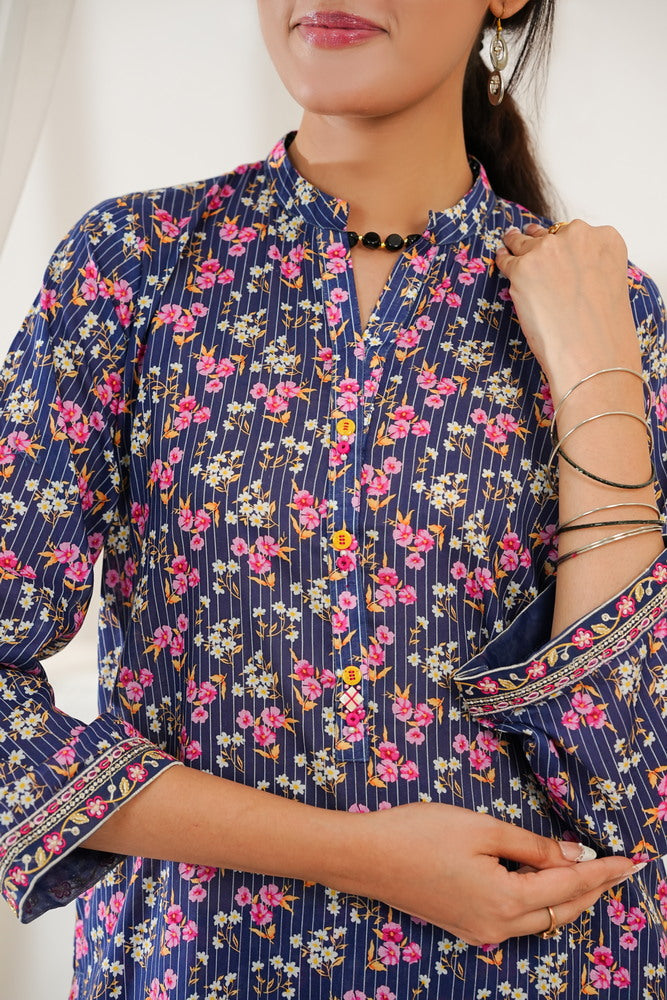 - Shirt : Printed Shirt With Embroidered Sleeve and Chaak Daman