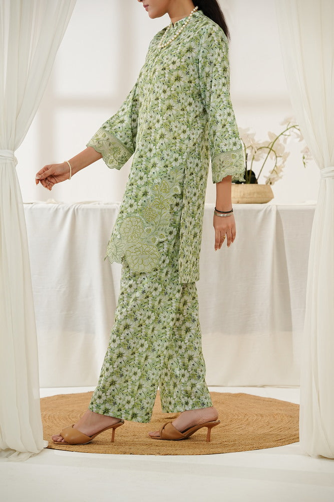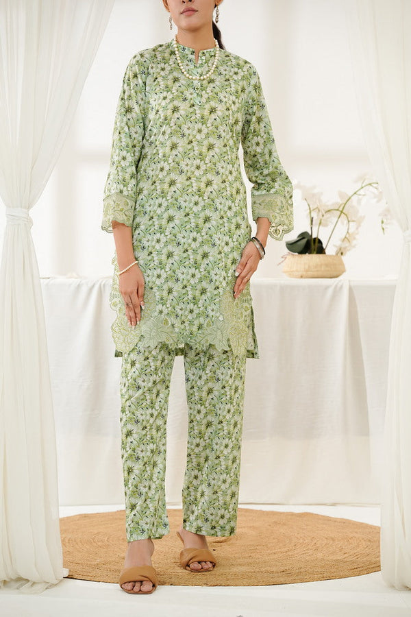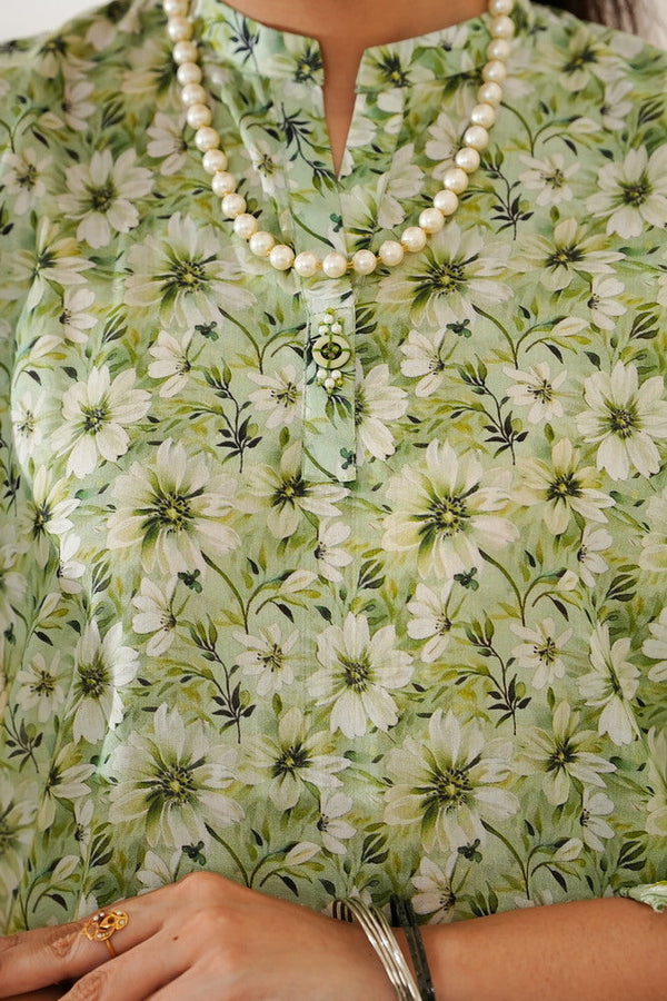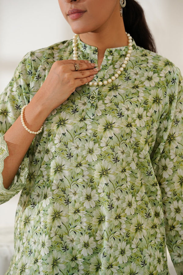 - Shirt : Printed Shirt With Embroidered Sleeve and Chaak Daman