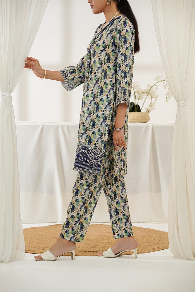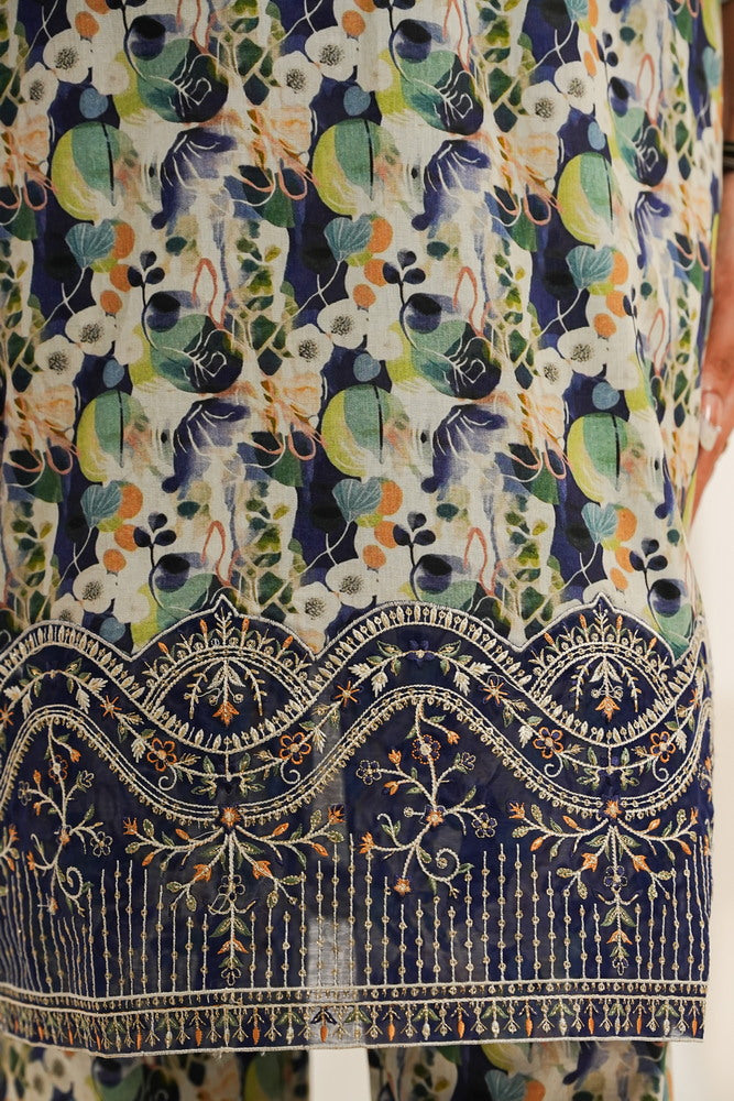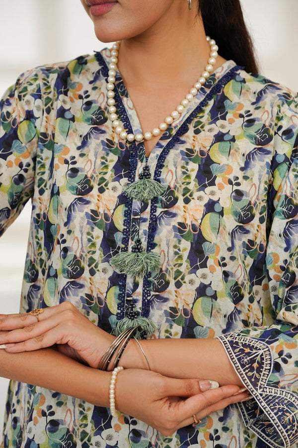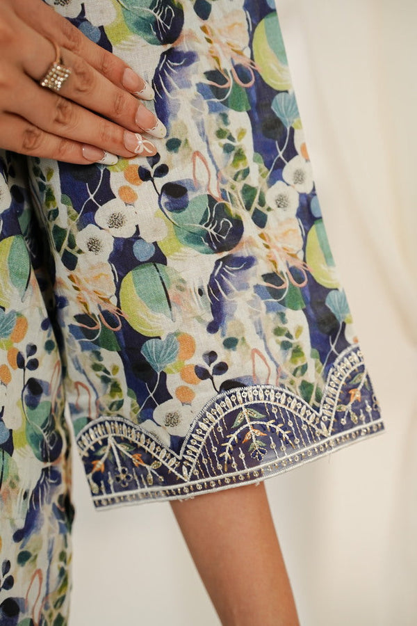 - Shirt : Printed Shirt With Embroidered Sleeve and Daman