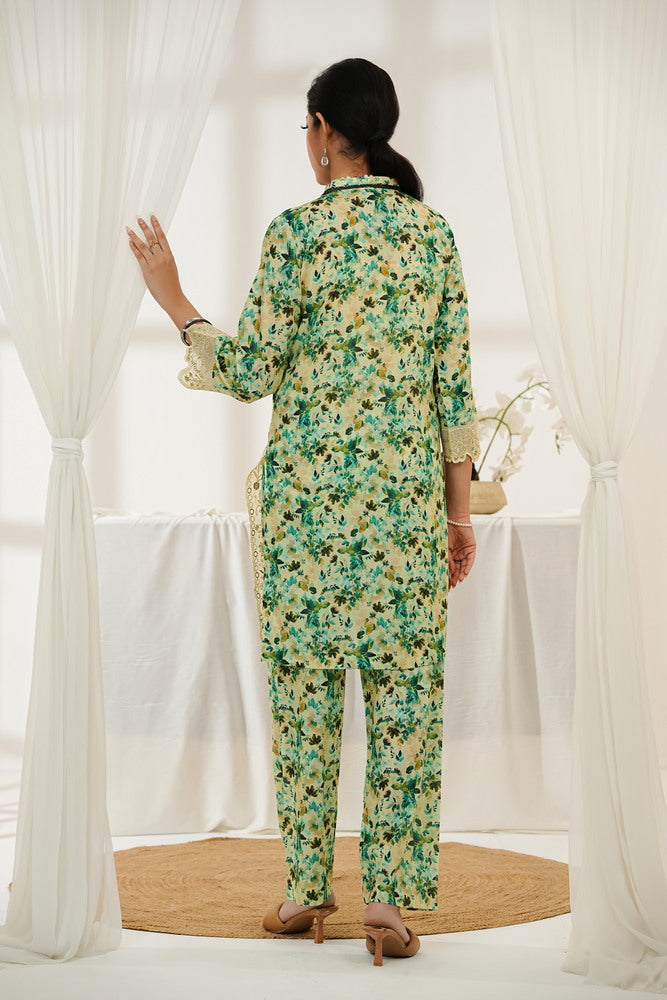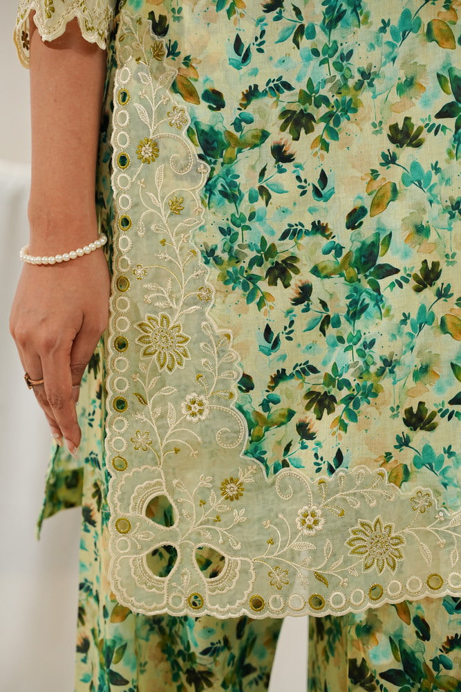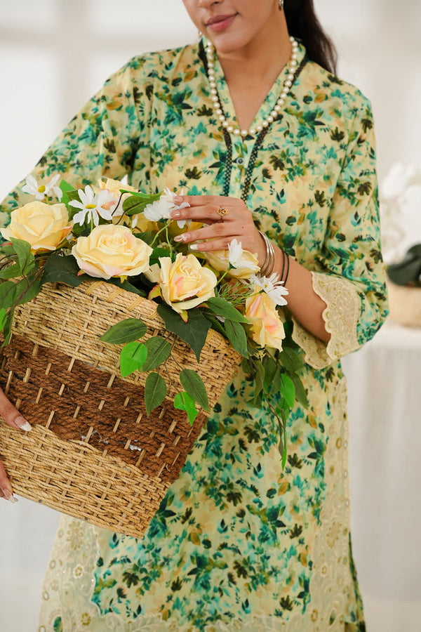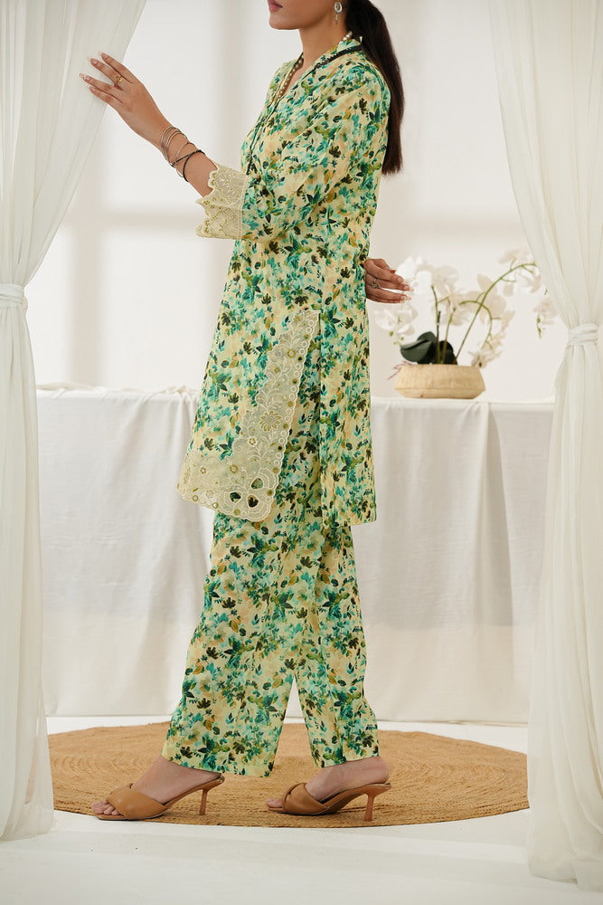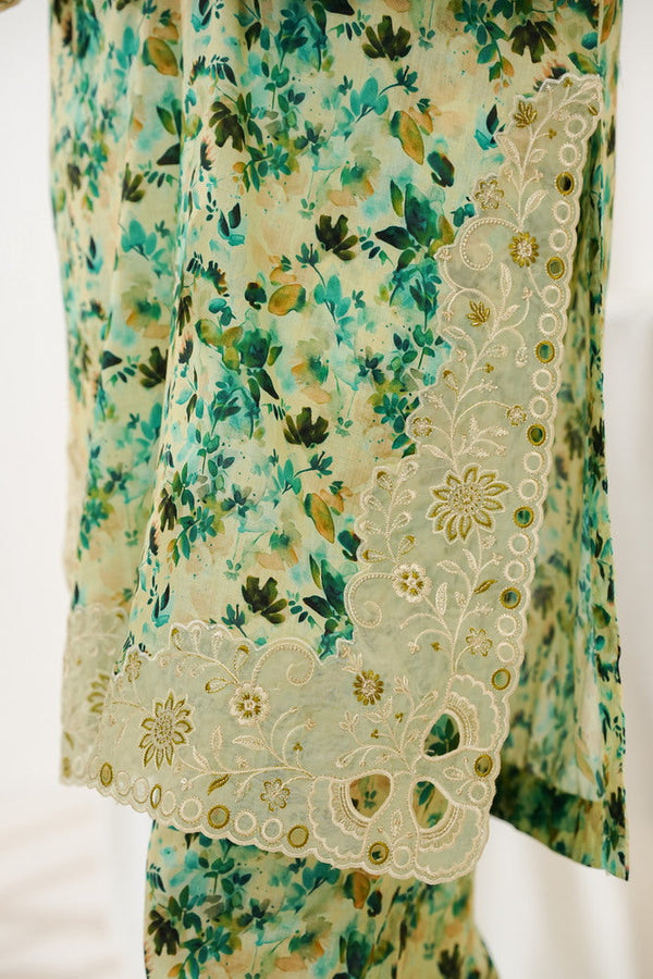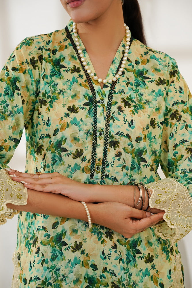 - Shirt : Printed Shirt With Embroidered Sleeve and Chaak Daman