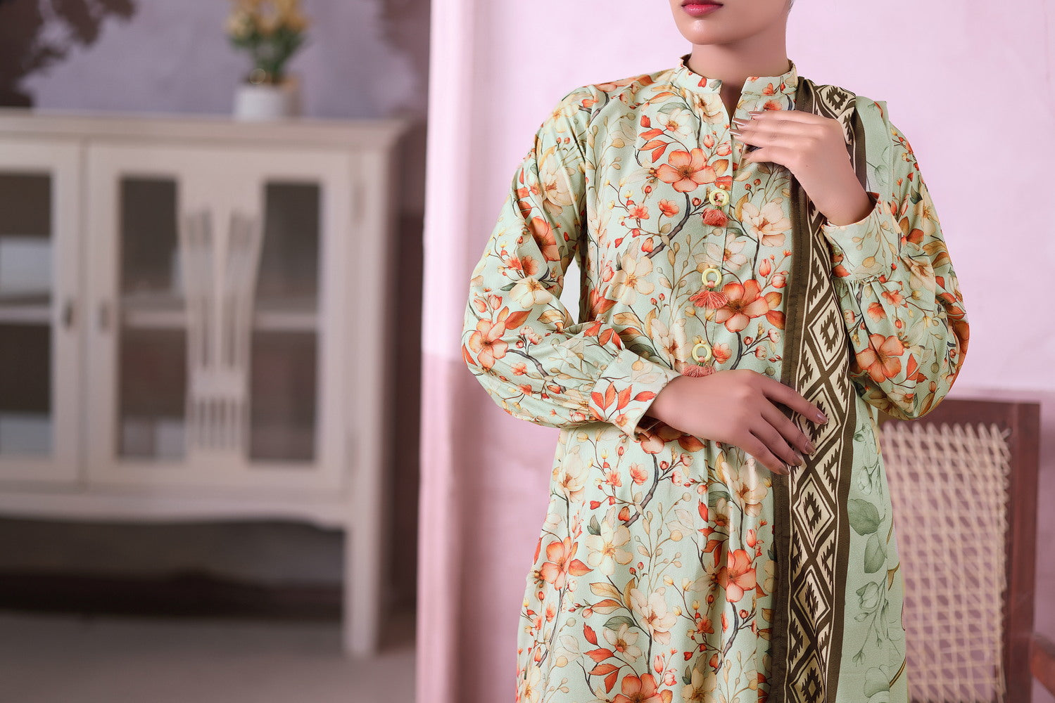 Ready to be enchanted by KHAAS 3PC Karandi Stitched Collection by AIZAL blending timeless elegance with exquisite craftsmanship.
